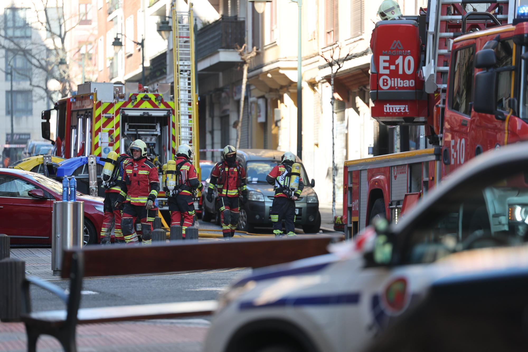 El incendio se ha registrado en el primer piso de un edificio de estructura de madera en la calle Labayru de Bilbao, esquina con Carmelo Gil, que ha afectado también al segundo piso