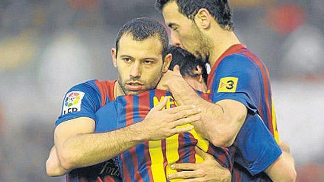BARCELONA: Valdés; Alves, Mascherano, Puyol; Busquets, Xavi (Min. 83: Keita), Iniesta, Cesc Fabregas; Cuenca (Min. 73: Tello), Messi y Pedro (Min. 87: Adriano).