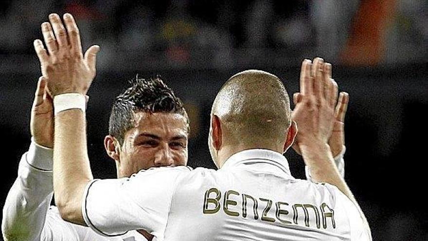 Jose Mourinho, en algún lugar del estadio, pero fuera y no en el banquillo, apostó por la dupla Benzema e Higuaín. Una decisión que le salió redonda. El Madrid amenazaba sin tino en acciones a balón parado, al tiempo que el cuadro donostiarra desaprovechó para empatar una descompensación de los merengues que situó a Agirretxe de cara a Casillas, que desvió a córner. Cristiano Ronaldo marró dos. Un remate franco al cuerpo y un cabezazo. Pero a la tercera atinó. Fue en la aparición enorme de Ramos. Un corte, balón al suelo y centro medido al luso, que cruzó ante Bravo. El segundo gol, el que nunca apareció ante el Málaga y en El Madrigal, sosegó al Madrid, que firmó el tercero por medio de Benzema. El galo, entre los más destacados, finalizó a la perfección una asistencia de cincuenta metros de Xabi Alonso.