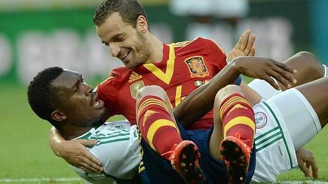 Del Bosque torcía el gesto en el banquillo. No le gustaba lo que veía. Pero España tiene jugadores para cambiar todo en un abrir y cerrar de ojos. Cuando tocó con verticalidad generó peligro. Cesc, incansable lanzando movimientos ofensivos, se encontró dos ocasiones de gol. Una la estrelló en Enyeama y la segunda besó la madera. Soldado tuvo otras dos.