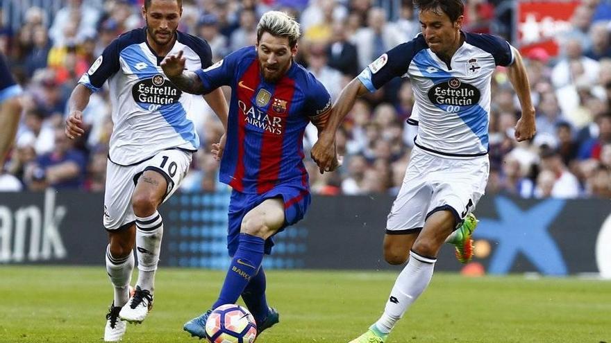 La producción azulgrana estaba bajo mínimos y al Depor no le costaba mucho tocar el balón e incluso crear peligro con él, especialmente por la banda derecha, en la zona de Digne.