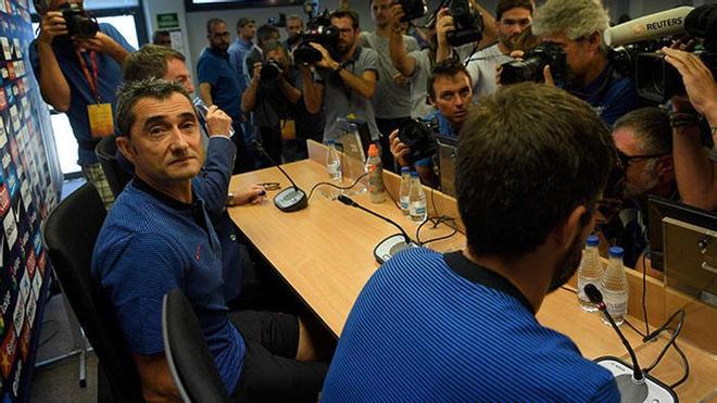 También se refirió a Andrés Iniesta, que a sus 33 años podría encarar su última temporada de azulgrana, pues aun no ha renovado. “Llevamos solo tres días y sería un poco pronto para preocuparme. Sobre Andrés mi intención es que esté contento en el equipo, que participe y nos aporte muchas cosas. Luego veremos cómo se desarrolla la temporada, pero es un jugador que tiene un nivel tal que difícil de encontrar otro igual”, destacó sobre el capitán del Barça.