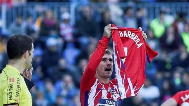 Griezmann, que anotó su octavo tanto en liga, elevó al cielo, para festejar el tanto, una camiseta con el dorsal número siete y el nombre de 'Cholo' Barberá en la espalda, en homenaje al futbolista de 15 años del Alzira y seguidor del Atlético que falleció la semana pasada de muerte súbita mientras disputaba un partido con su equipo.