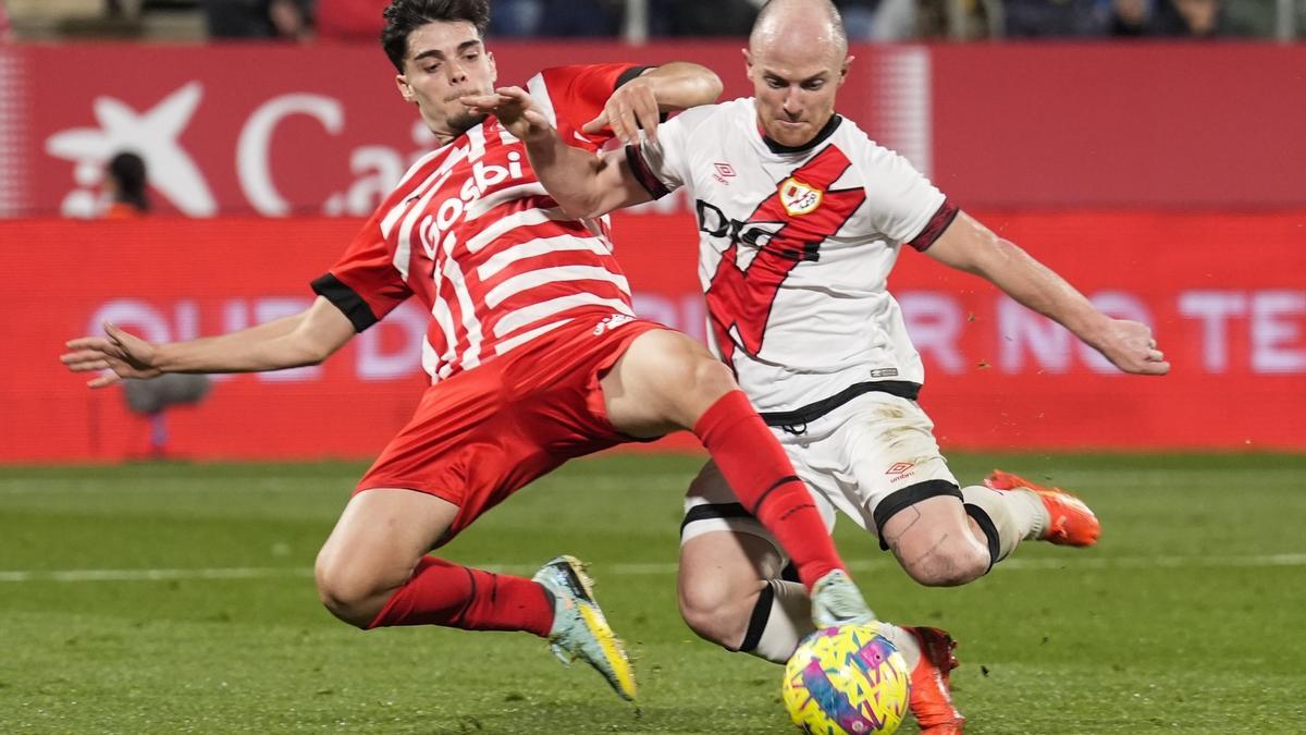 LaLiga se reanudó ayer jueves, después del parón por el Mundial, con un vibrante empate entre el Girona y el Rayo Vallecano en Montilivi. El primer gol de la tarde solo requirió un minuto y diez segundos, fruto de un grave error del local Miguel Gutiérrez en una cesión hacia atrás. Camello recogió el balón, corrió hacia la portería y batió a Paulo Gazzaniga con un chut cruzado. El Girona no acusó el gol, sino que despertó, mejoró, adelantó líneas y se fue adueñando del balón y del encuentro. El premio a la reacción del Girona, creciente, llegó a la media hora, en un penalti señalado a instancias del VAR por un claro pisotón de Fran García sobre Iván Martín. Castellanos superó a Stole Dimitrievski con un disparo centrado.