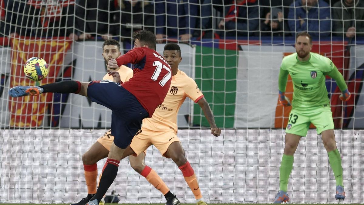 El susto inicial desperezó a Osasuna, que tuvo la ocasión más clara en un cabezazo del Chimy Ávila que rozó el larguero, antes de un triple cambio de Jagoba Arrasate –Budimir, Moncayola y Brasanac por Ávila, Rubén García y Pablo Ibáñez– que metió una marcha más al cuadro local. En el 63, Abde colgó un balón al segundo palo que Moi Gómez conectó, pero Oblak, tirando de reflejos, desbarató la opción clarísima de los rojillos. Moncayola, que poco antes había ingresado en el terreno de juego, aprovechó el desconcierto colchonero para enganchar un remate desde la frontal que se marchó cerca del palo derecho.