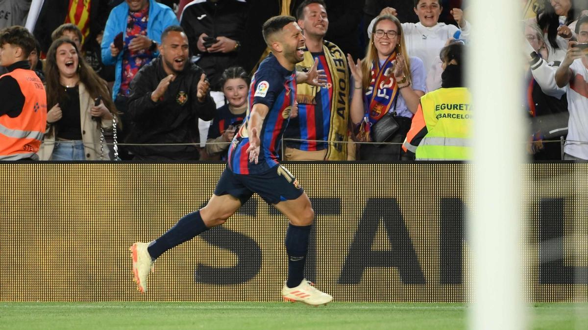 Faltaban veinte minutos y la ansiedad empezaba a apoderarse del equipo de Xavi, pero el Barcelona empezaba a oler la Liga y ponía cerco a la portería rojilla. Hasta que, a falta de cinco minutos, Jordi Alba controlaba un balón colgado al área que De Jong había bajado para que este lo recibiera en el vértice izquierdo del área y sorprendiera a Aitor Fernández con el exterior de su zurda.