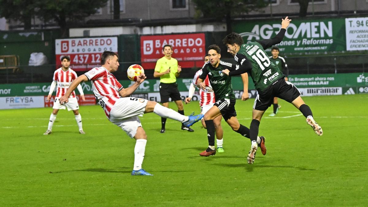 El paso por vestuarios pareció espolear a los verdinegros. A los cuatro minutos, Laka, que este domingo apareció como delantero centro, disparó a la media vuelta desde el punto de penalti pero el balón salió rozando la cepa izquierda de Royo. A los diez minutos, un centro de Jon Rojo desde la izquierda tocó en la mano de Núñez y el árbitro no dudó al señalar los once metros. Jorge García, engañando a Royo por su izquierda, puso el empate y restaba más de media hora para poder culminar la remontada. Sin embargo, al igual que en la primera mitad, a los de Aitor Calle se les acabaron las ideas en ataque. En los minutos finales, además, el Logroñés hizo que los espectadores de Las Llanas, además de con frío, se marcharan del campo con el susto en el cuerpo. David Sánchez, tras recoger un rechace, recortó dentro del área y disparó al poste de Iru, que se interpuso ante la derrota.