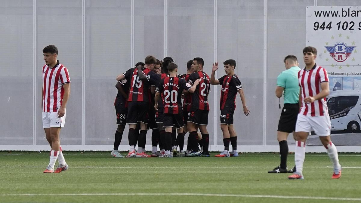 Tras el paso por los vestuarios, el Bilbao Athletic buscó la igualada sin éxito. Y a doce minutos para final, el Arenas, muy serio, sentenció tras una buena combinación en ataque que remachó Baba.