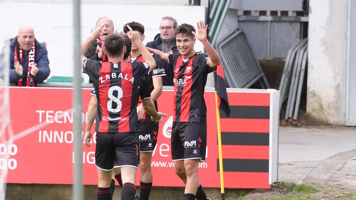 El choque comenzó con un Ourense que quiso salir con el balón controlado desde atrás. Lo intentó el visitante Sergio Benito, que se adentró en el área, pero entre Boriko y Gastesi desbarataron el peligro. La respuesta local vino con un remate de Vizcay tras un saque de falta, que acabó en las manos de Ratón. Poco pudo hacer el portero del Ourense poco después. Lartitegi, tras un cambio de ritmo, puso un centro medido a Vizcay, que solo de marca, remató de cabeza para lograr la primera diana de la matinal en Fadura. A partir de ahí, el equipo local, cada vez que recuperó el esférico, salió en velocidad y en una de esas, Lartitegi se fue en carrera, piso área y batió de tiro cruzado al cancerbero visitante. El colegiado no dio validez al gol por fuera de juego. De ahí al descanso, el conjunto gallego volvió a coger el mando del juego y rondó la portería de Gastesi en un par de ocasiones.