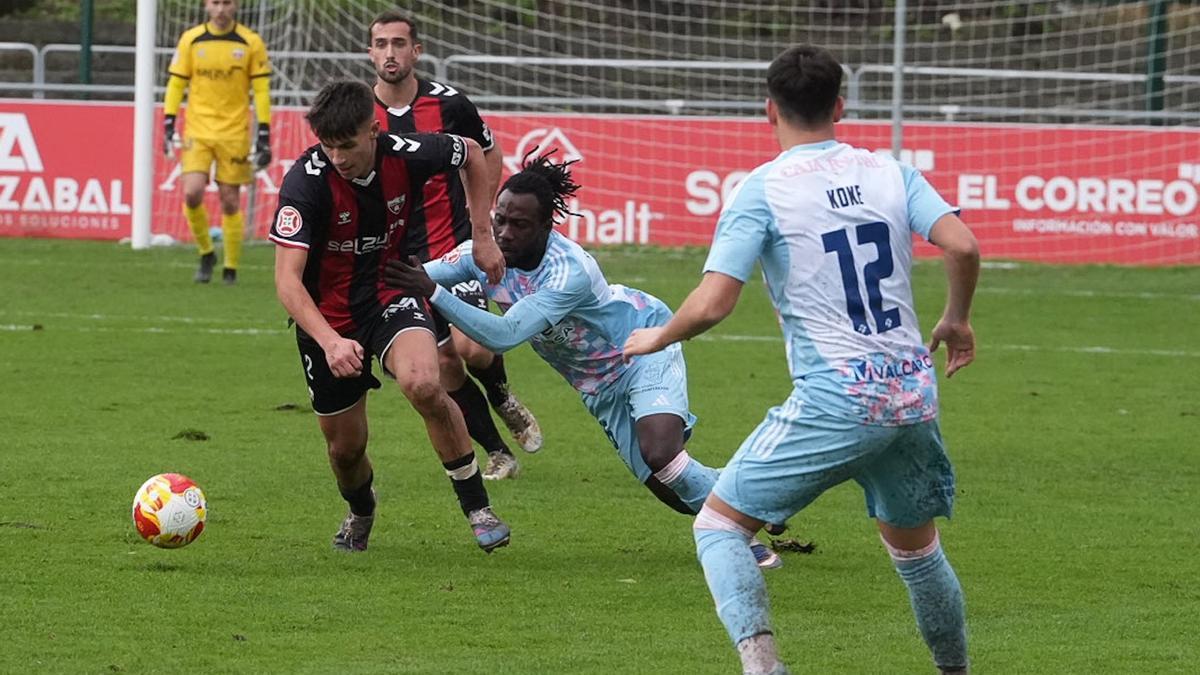En el minuto 36, en el otro área, Cortés recibió un balón y su disparo cruzado estuvo a punto de alcanzarlo Xemi Fernández para desviarlo a gol, pero se marchó a la derecha de la portería de Peña. Y antes de enfilar el descanso, una buena ocasión de Vizcay, con un disparo que despejó la defensa visitante.