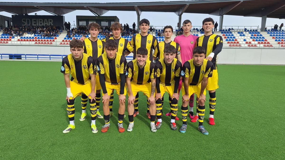 EIBAR B: Ayala, Amilibia, Pastor (Min. 83, Larrañaga), Llorente, Ortuzar, Aguirre, Delgado, Asenjo (Min. 35, Santolaya) (Min. 60, Mateos), Zubiria, Hugo García (Min. 83, Etxebarria) y Jon López (Min. 60, Redondo).
