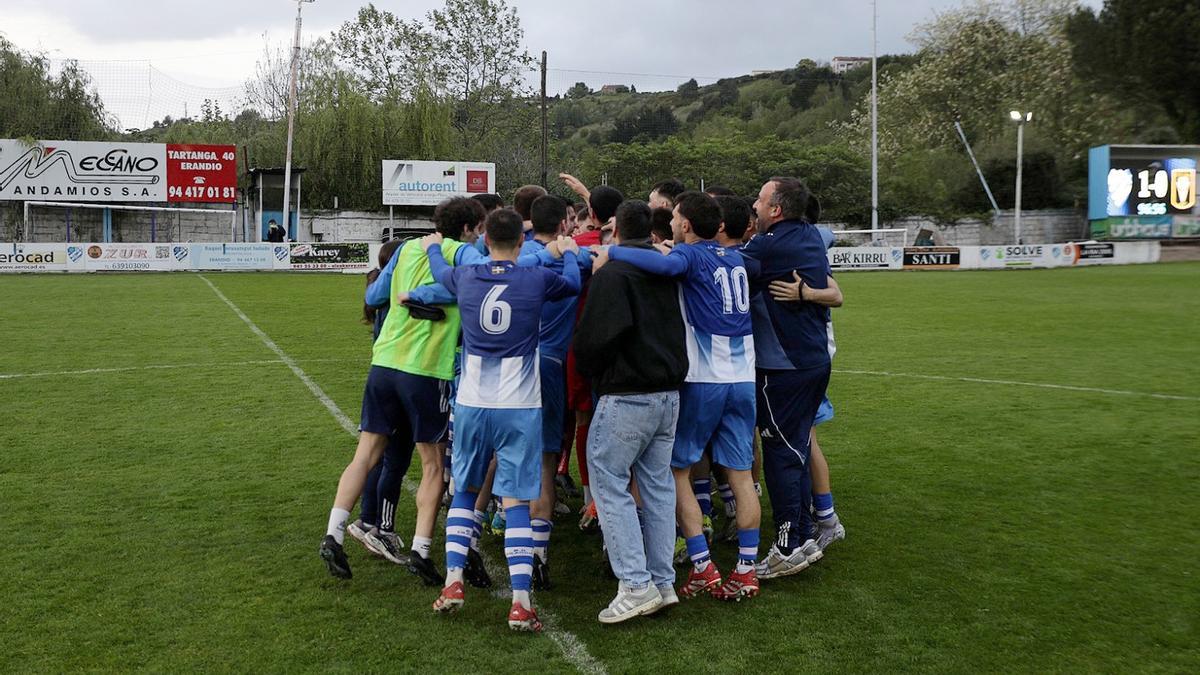 Era cuestión de tiempo que la Sociedad Deportiva Erandio lograra el billete para Tercera RFEF. Y el ansiado ascenso del conjunto albiazul ha llegado este sábado por la tarde en su visita al Basconia B. Los pupilos de Aitor Garmendia han ganado 0-2 en Artunduaga y se han proclamado matemáticamente campeones de la División de Honor vizcaina, con el premio de militar el curso que viene en la quinta categoría del fútbol estatal.