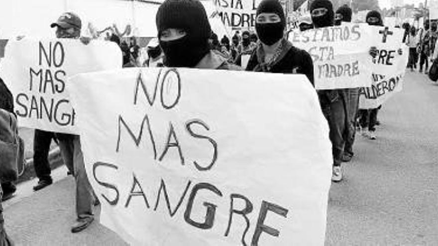 San Cristóbal de Las Casas. El guerrillero Ejército Zapatista de Liberación Nacional (EZLN) concentró en San Cristóbal de Las Casas (Chiapas, sur del país) a unos veinte mil indígenas con los rostros cubiertos para solidarizarse con el poeta Javier Sicilia y su marcha por la paz. En la movilización, la más grande protagonizada en una década por los zapatistas, estuvo ausente su líder, el subcomandante Marcos. Los indígenas, de las etnias tsotsil, tseltal, chol y tojolabal, marcharon con ropajes propios de su cultura. En silencio, con pancartas y banderas de México y del EZLN, los indígenas -que no portaban armas- protagonizaron un mitin. Un comandante zapatista que se identifico como David explicó que su solidaridad con Sicilia nace de una lucha común por la vida. "Los gobiernos dicen que la única estrategia buena es la que ensangrenta las calles y los campos de México y destruye familias comunidades y al país entero", añadió en lo que fue un pronunciamiento crítico contra la guerra al narcotráfico emprendida en diciembre de 2006 por el presidente Felipe Calderón. "Por eso, hoy estamos aquí para decirles sencillamente a esas personas que en su silencio caminan que no están solos, que escuchamos el dolor de su silencio (...), ¡no están solos!", concluyó.
