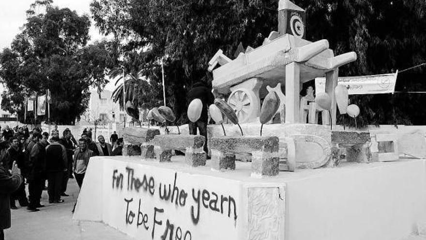 Ayer, su ciudad natal le rindió homenaje con un monumento escultórico, un carro como el que le confiscó aquel 17 de diciembre la policía con una frase escrita en rojo: "Para aquellos que anhelan ser libre". Asimismo, los residentes de Sidi Bouzid han preparado para la ocasión múltiples actividades culturales que se prolongarán durante tres días. Exposiciones de fotos sobre la Revolución de la Dignidad y la Libertad y de las víctimas que murieron, proyecciones de películas en diferentes calles de Sidi Bouzid, espectáculos callejeros, conferencias y recitales de poesía son algunas de las actividades que arrancaron ayer en la ciudad, situada a 280 kilómetros al sur de la capital tunecina.