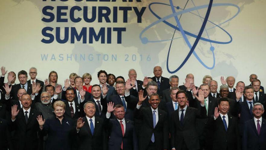 Washington - El presidente de Estados Unidos, Barack Obama, hizo de anfitrión ayer de los líderes de cincuenta países en la Cumbre de Seguridad Nuclear celebrada en Washington y que se centró en evitar que los materiales necesarios para construir un arma atómica caigan en manos de grupos terroristas como el Estado Islámico (EI). Con una cena de bienvenida en la Casa Blanca, Obama inició el jueves la cuarta Cumbre de Seguridad Nuclear, en la que los líderes mundiales debatieron sobre medidas para evitar que el grupo yihadista acceda a los materiales nucleares que varios países albergan para su uso civil o militar.