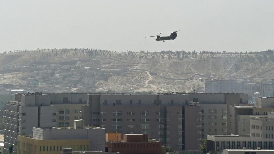 Un helicóptero norteamericano sobrevuela Kabul. Foto: AFP
