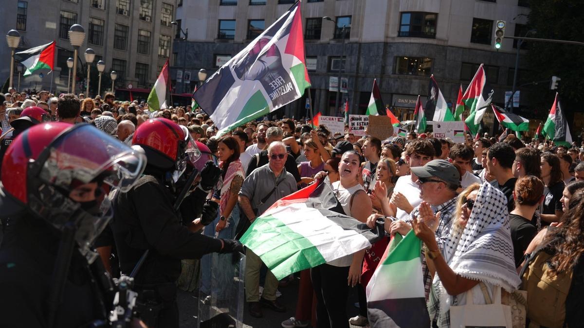 En dos puntos del recorrido se ha podido ver a manifestantes con pancartas llamando al boicot, con diversos nombres de empresas a las que acusan de colaborar con Israel, y que han encendido botes de humo con los colores de la bandera palestina. Una de las marchas ha congregado a una gran multitud en la Plaza Moyúa, donde agentes de la Ertzaintza han protegido el local de Starbucks y, en el Casco Viejo, el hotel NXY, perteneciente a una cadena de origen israelí, también ha sido custodiado por agentes de la ertzaintza. No se han registrado incidentes relevantes, aunque la presencia policial ha sido visible en puntos estratégicos del recorrido y en el Casco Viejo.