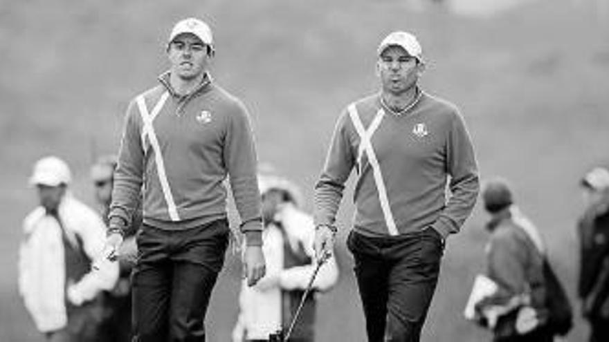 bilbao - Europa acabó la primera jornada de la Ryder Cup en Gleneagles con una ventaja de dos puntos (5-3) ante Estados Unidos, pese a que tuvo que sufrir por el discreto rendimiento de algunas de sus figuras. Rory McIlroy y Sergio García, número 1 y 3 del mundo, hicieron pareja por la mañana y por la tarde y se esperaba lo máximo de ellos, pero solo pudieron rascar medio punto a los americanos en el último hoyo de su duelo de foursomes ante Jimmy Walker y Rickie Fowler, que ganaban por dos hoyos a la salida del 17. Por la mañana, también había cedido Ian Poulter, casi infalible en la Ryder, junto al local Stephen Gallacher ante los debutantes Patrick Reed y Jordan Spieth, que les sacaron cinco hoyos de ventaja.