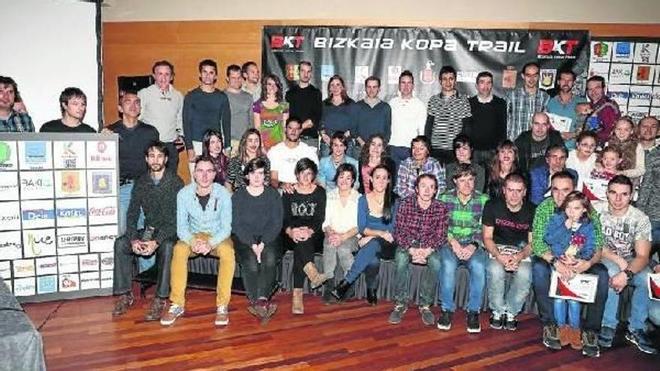 Entrega de premios. Tras una primera temporada muy exitosa, la Bizkaia Kopa Trail reconoció en la tarde de ayer a los mejores participantes en las diferentes categorías. La prueba, que cuenta con el patrocinio de DEIA, celebró una gala en un céntrico hotel bilbaino. Entre los premiados estuvieron los líderes de las diferentes disciplinas: José Romero y María Aldama (MTB); Alfonso Mendoza y Ángela Tejedor (trail corto); Ander Zurita y María Richter (trail largo); y Ekaitz Erauskin y Saray Rodríguez (txakur-kros). Foto: Juan Lazkano