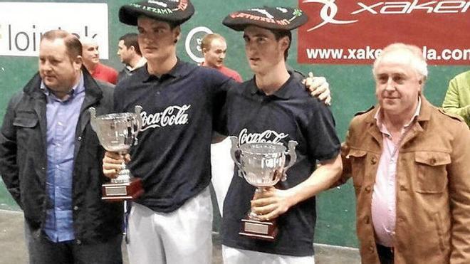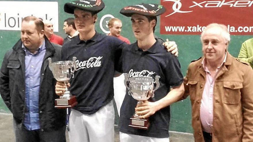 Lezama - Errandonea y Martínez se llevaron ayer las txapelas de Primera del Comarcal de Lezama al vencer en la final a los vizcainos Azpiri-Zabala por 11-22 en un encuentro desnivelado de manera clara para los jóvenes de Bera, que ganaron contra pronóstico. Y es que, por el nivel mostrado en las eliminatorias anteriores, el delantero de Elorrio y el zaguero local parecían favoritos al triunfo final del torneo, pero amaneció la mejor versión de sus adversarios. El delantero estuvo letal en los cuadros alegres. Acabó una decena de tantos y no falló ni una sola pelota en juego. Martínez cuajó un encuentro intenso, con pegada, pero un bajón suyo puso pimienta.