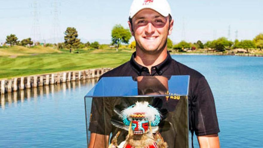 Bilbao - En el ranking de victorias de Arizona State University, palabras mayores cuando de golf se trata, solo el gran Phil Mickelson, noveno jugador de todos los tiempos en número de torneos del PGA Tour ganados, puede ya mirar por encima del hombro a Jon Rahm. El de Barrika, el mejor jugador amateur del planeta de 2015 tal y como atestigua su Ben Hogan Award, sigue haciendo historia y el pasado domingo consiguió adjudicarse por tercer año consecutivo el ASU Thunderbird Invitational, el torneo más importante organizado por su universidad, Arizona State, algo que nadie, ni siquiera Mickelson, ha conquistado en los más de 40 años de historia del evento. Con este triunfo, Rahmbo es ya el segundo jugador de los Sun Devils en lo referente a victorias individuales, con nueve. Por delante del vizcaino, Mickelson, con las 16 victorias que firmó entre 1988 y 1992, mientras que a su espalda quedan ya Billy Mayfair, con ocho, además de Alejandro Cañizares, Paul Casey y Charlie Gibson, con seis.