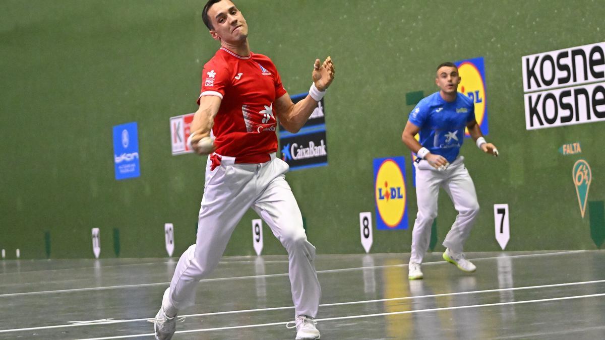 El riojano de Aspe comenzó con las ideas claras: emular el perfil del acotado. Receta contra Larrazabal: cortadas, buscar los pies, estimular los problemas de transporte, evitar una volea cargada de dinamita. Inició la contienda con un saque, gran ariete. Cruzó bien, le dio candela y puso en serios problemas a Iker en el resto, quien respondió al aire todo el partido sin pensárselo dos veces. Cometió algunos errores el de Baiko, porque su explosividad requiere agresividad. Forma parte de su ADN como pelotari, igual que la violencia y el ritmo.