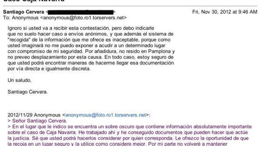 IRUÑEA. Chantajes, correos electrónicos anónimos, un sobre escondido en las murallas de Iruñea, un diputado navarro detenido por la Guardia Civil, un hijo abogado haciendo negocios con la entidad que preside su padre y, en el centro de toda la trama, otra vez Caja Navarra. Son los ingredientes de un nuevo escándalo político que ha acabado con la dimisión del diputado del PP Santiago Cervera y que han vuelto a situar a Nafarroa en el centro del debate público con argumentos tan atractivos como dañinos. Una polémica que añade además nuevas sombras al agónico final que vive la que durante años ha sido la principal entidad financiera de la Comunidad Foral, hoy víctima de intrigas y controversias que parecen no tener fin.