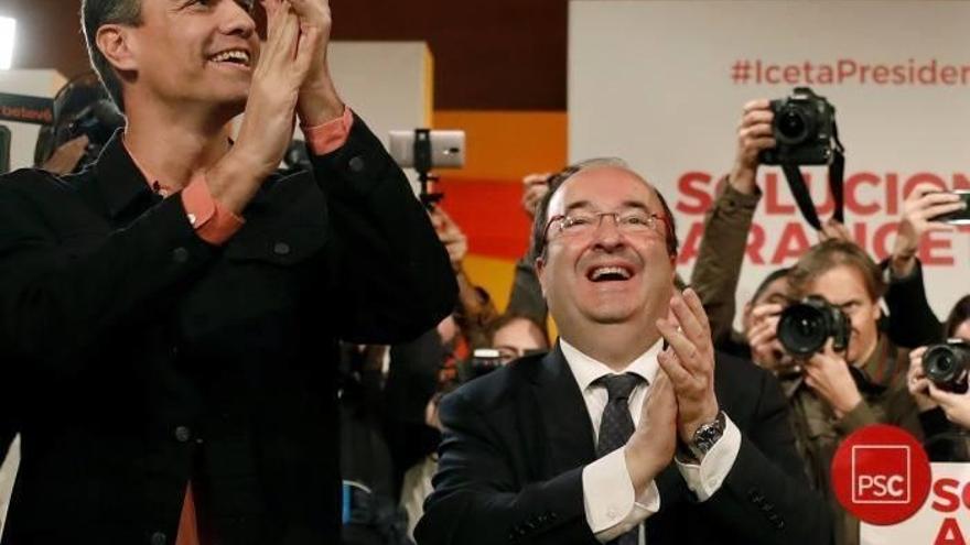 Iceta había asegurado que los votos del PSC no servirán para entronizar a un president independentista, al igual que tampoco servirán a la candidata de Ciutadans, Inés Arrimadas. Por si acaso Sánchez recordó ese condicionante al cabeza de lista socialista, único representante político que a su juicio podría solventar la fractura provocada por el independentismo y tender alianzas con otras formaciones. A ello llamó el propio Iceta al reclamar los votos de comuns, PP y C’s a su investidura. ERC, Junts per Catalunya y CUP quedan por lo tanto fuera de esa ecuación. Aunque tampoco parece que los populares y el partido naranja encajen con facilidad en esa alianza transversal, ya que el nuevo mandatario de la Generalitat debe comprometerse a desarrollar “un programa de políticas de izquierdas y progresistas”, según Sánchez.