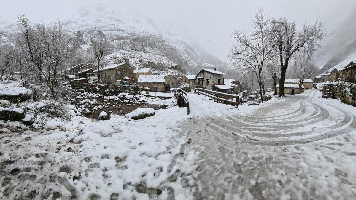 Agazapada entre montañas y a menudo bajo un manto de nieve te puedes encontrar en invierno esta localidad asturiana que apenas cuenta con varias decenas de habitantes. A este coqueto pueblo no se puede acceder en vehículo a motor, solo caminando durante unas dos horas o usando un funicular. Muchos montañeros lo usan como punto de partida para explorar el célebre Pico Urriellu o Naranjo de Bulnes.