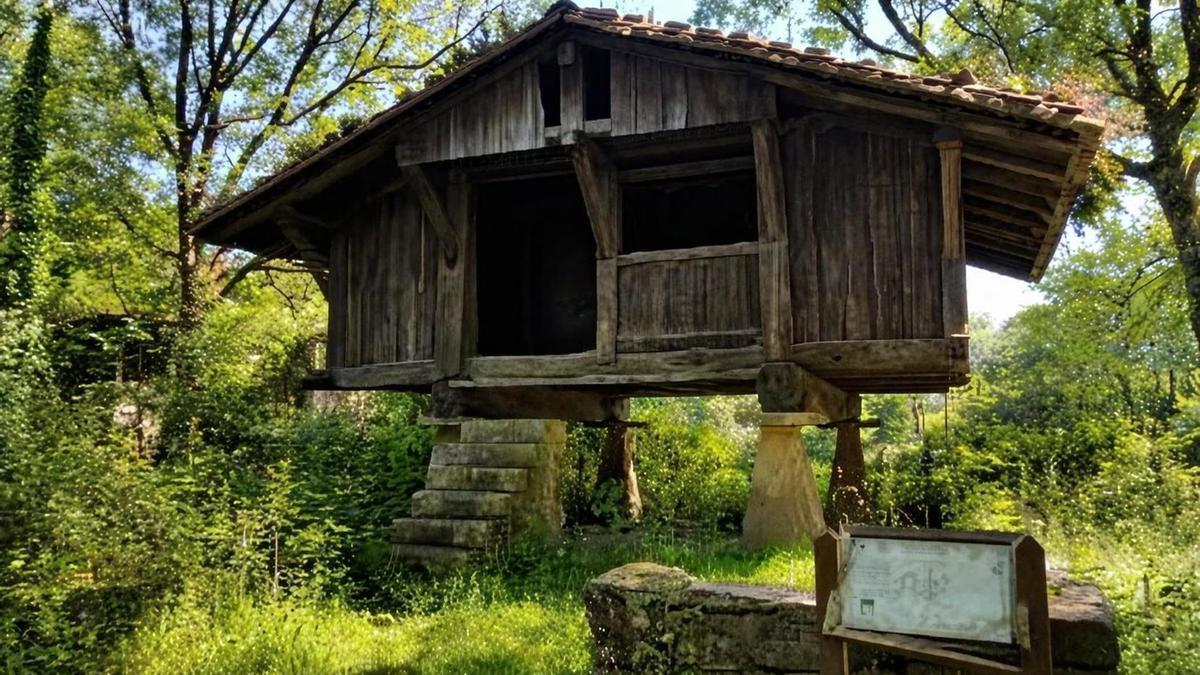 Ante la duda, @beacamposgv explica la historia corta de estos edificios con precisión en su vídeo: "Los hórreos eran graneros situados junto al caserío, que se utilizaban para depositar semillas, grano, manzanas, castañas y otros frutos de la cosecha. Estos productos se ponían fuera del alcance de los roedores, por eso a la escalera de piedra por la que se accede le falta el último peldaño".