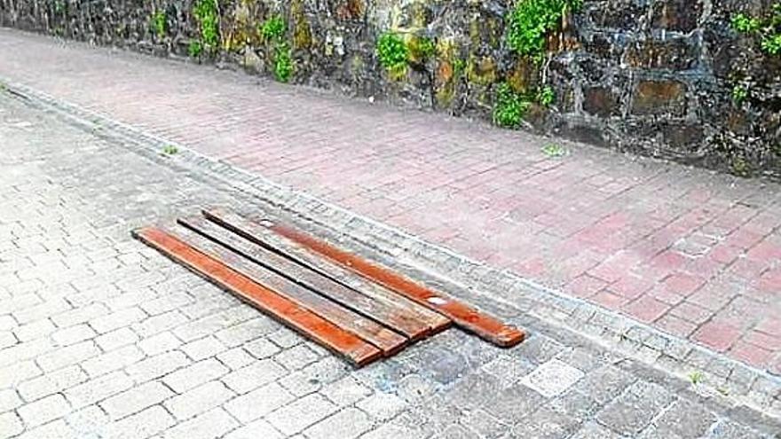 Los tres bancos sufrieron daños de diversa índole, aunque todos considerables. Los autores arrancaron y se llevaron las patas de fundición de dos de los bancos, así como los tablones de madera del respaldo, dejando abandonados sobre el suelo los tablones del asiento. Mientras que en el tercer asiento estropeado, se llevaron los tablones del respaldo y las patas aparecieron dobladas, con signos de haber sido forzadas y zarandeadas con fuerza con la presunta intención de arrancarlas, aunque no lo lograron, por lo que abandonaron el lugar.
