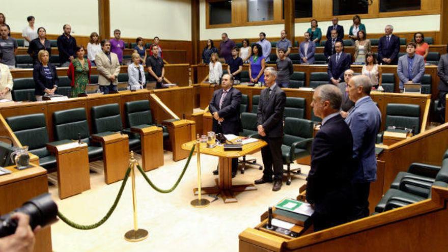 Tras la lectura de la declaración a cargo de la presidenta del Parlamento Vasco, Bakartxo Tejeria, los parlamentarios han guardado un minuto de silencio en memoria de Maguette Mbeugou.