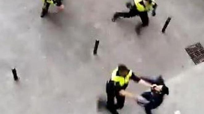 Unidades del dispositivo localizaron al presunto autor del robo en la Plaza Corazón de María, el cual al intentar proceder a su detención ofreció resistencia. En un vídeo que se ha compartido a través de X (antigua Twitter) se puede ver cómo una decena de agentes intentan reducir al ladrón.