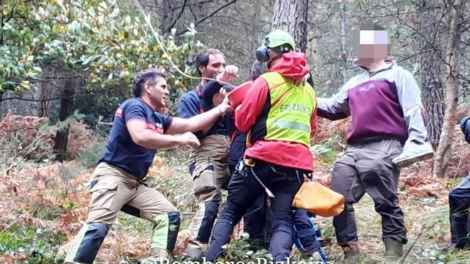 La intervención de los bomberos ha posibilitado el rescate de la víctima que presenta una posible fractura de tobillo. Los bomberos han estabilizado e inmovilizado a la persona herida para subirla del punto en el que se encontraba y fuera trasladada por un helicóptero de la Ertzaintza. De hecho, el rescate ha sido complicado ya que se ha tenido que realizar “sin camilla dado lo frondoso de la zona”.