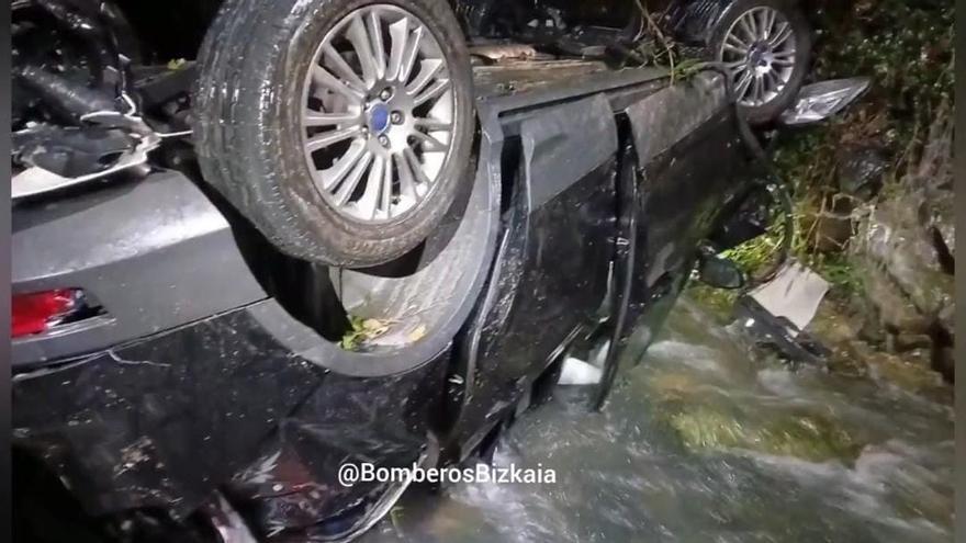 La salida de la vía, en la que no hay ningún otro vehículo implicado, se ha registrado a las 1.10 horas de la madrugada. Según se puede ver en imágenes difundidas por Bomberos de Bizkaia, todo parece indicar que el conductor perdió el control del vehículo, atravesó el guardarraíl y terminó cayendo en el riachuelo.