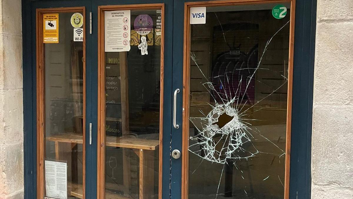 Ni el sonido de la alarma que comenzó a sonar detuvo al hombre ya que, según se puede ver en las imágenes a las que ha tenido acceso DEIA, el individuo siguió golpeando el cristal de El Laterío con el principal objetivo de entrar al mismo.