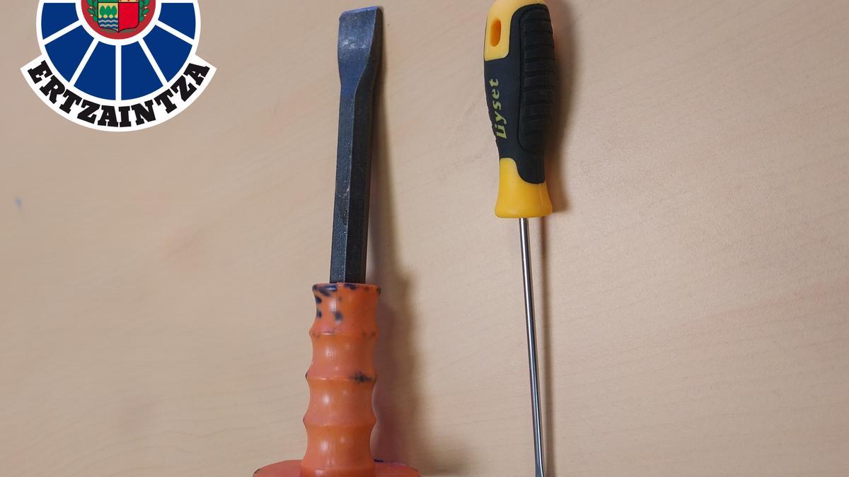 Un hombre de 25 años ha sido detenido por la Ertzaintza como presunto autor de un delito de robo con fuerza, en grado de tentativa, en un domicilio unifamiliar ubicado en Irun. El arrestado, junto con otro individuo, trató de acceder al interior de la vivienda reventando la puerta de entrada a golpes por medio de un cincel, un destornillador y una piedra.