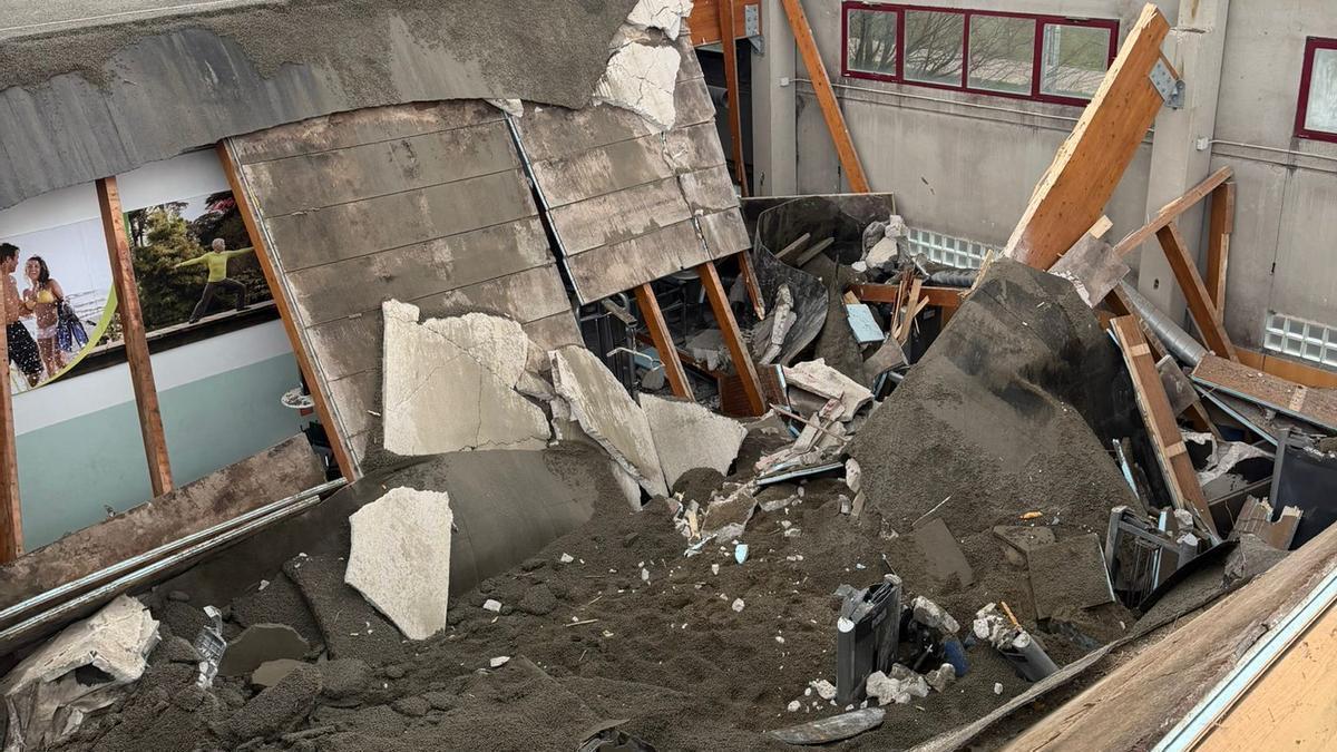 Por fortuna, todo quedó en un susto, pero este viernes, pasadas las 16.00 horas, cuando se desplomó el techo del gimnasio del polideportivo de Ortuella, hubo quien se temió que pudiera tratarse de algo mucho más grave. Y es que en el momento en el que parte del techo de estas instalaciones deportivas se vino abajo, había tres personas haciendo deporte en este equipamiento. Usuarios que, afortunadamente, no resultaron heridos.