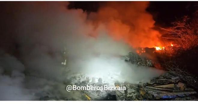 El fuego se declaró en un pabellón destinado al almacenamiento de palets y generó una importante intervención por parte de efectivos de Bomberos de Bizkaia, que trabajaron durante horas para controlar y extinguir las llamas. Gracias a la rápida actuación de los bomberos, no se registraron daños personales.
