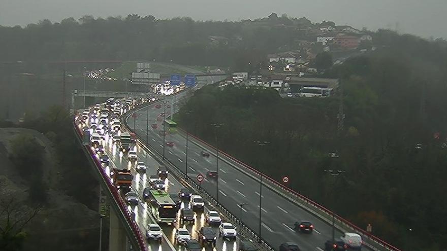 En Bizkaia el tráfico es denso y se pide precaución a la hora de circular con lluvia. Además, a todos estos accidentes se ha sumado en puntos como Bilbao, Barakaldo y Galdakao las retenciones habituales de primera hora de la mañana.