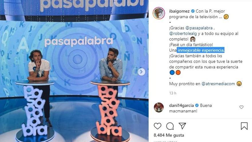 El exjugador del Athletic, Ibai Gómez, será uno de los próximos invitados en 'Pasapalabra'. El bilbaino ha publicado en su Instagram una foto junto al presentador del concurso, Roberto Leal, en la que agradece la "inmejorable experiencia" y anuncia que el programa se emitirá "muy prontito".
