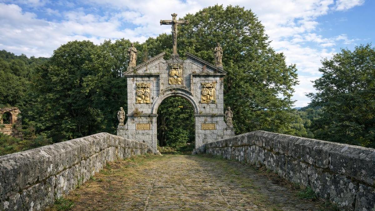 Leones, escudos, arco de triunfo y un calvario en lo alto