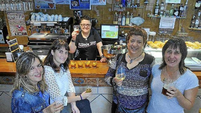 EHHHH Ziortza!!!!! saca unas cervezas y unos pinitos del oro”. En el bar Antxon, (Donde Zior) de Rekalde, la cuadrilla de Silvia, Susana, Miren e Izaskun están un viernes noche más de pintxo-pote. Pero esta vez es especial. Coincidiendo con la edición de Zirkualde, el barrio celebra la novena edición del Pintxo Zirko, su original concurso de tapas de inspiración circense. Esta cuadrilla de mujeres compuesta por Silvia Álvarez, Susana Baelo, Miren Mendoza, Izaskun Santamaría, con Ziortza Gómez de maestra de ceremonias, coge el relevo de los txikiteros de toda la vida y lleva a cabo una de las tradiciones bilbainas por excelencia. “Yo creo que ahora poteamos más las mujeres que los hombres. No fallamos y además, aunque en este momento nos veas solo a nosotras, aquí hay mucho rollo intergeneracional porque en esta cuadrilla potea también gente de veintitantos”, dice Susana, la más joven del grupo. “Aquí no hay edades, y además no hay que chivar quién es la más mayor”, bromea Silvia, destapando su veteranía aunque su aspecto no la delate.