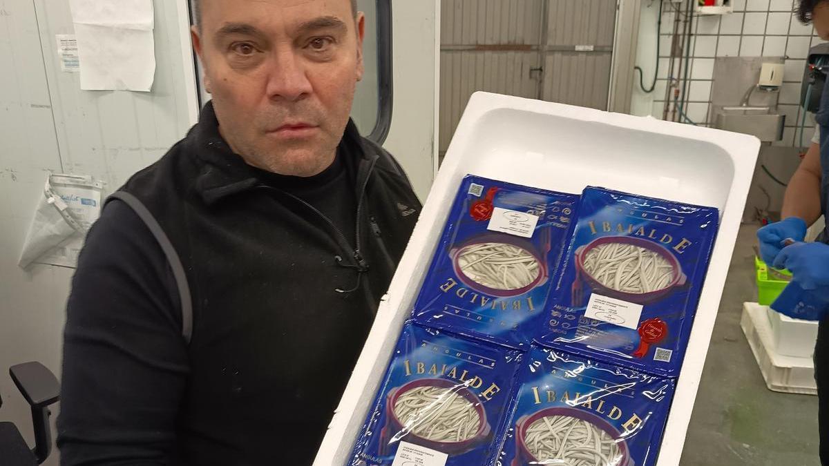 Ayer se podían encontrar las codiciadas angulas. Eso sí, a mil euros el kilo, lo que implica un precio sensiblemente superior en el mostrador de la pescadería. “Y subirán más” vaticinó el mayorista Gaizka Fernández de Zarate mostrando las que él ofrece. Entre sus joyas, presumía de percebes “gallegos de primera calidad a 150 euros, cada año hay menos percebes y, este, aún menos; probablemente sea el producto más complicado de conseguir con calidad”. Y desveló una caja de “algo exquisito que casi no se ve: langostino vivo”. Tan vivo que se escapaban saltando. “Por cada kilo de estos, se venden nueve de congelado”, puntualizó. “Lo que más vendo es merluza, aproximadamente mil kilos diarios. Y muchísimo rodaballo de Prodemar, mucha lubina de todos los tamaños, besugo y otros pescados. Rape hay menos y está más caro, pero en general hay abundancia de pescado”, resumió Gaizka.